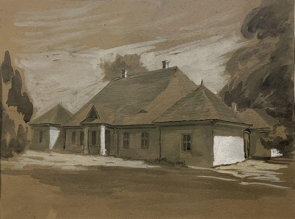 Maksymilian Brożek. Dwór w Świdniku. Sepia.